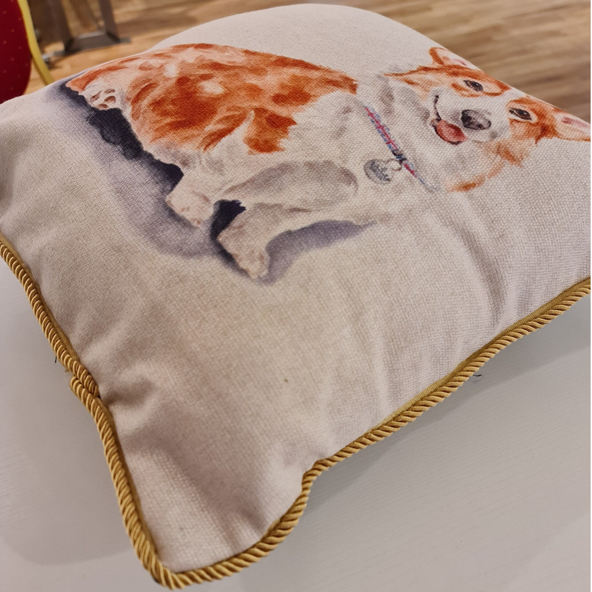 Beautiful plush cushion featuring Royal Corgi.